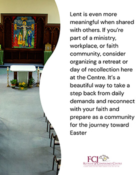 Lent is a time to begin again. Through prayer, simple living, and generosity, we learn to love as Jesus loves. We try to listen to God, to others, and to the quiet voice within.