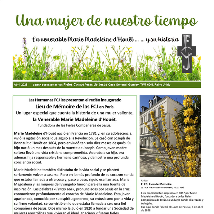 Lee el último número de nuestro boletín: Una mujer de nuestro tiempo: celebrando a Marie Madeleine. Mediante él queremos dar a conocer la vida y la obra de la Venerable Marie Madeleine d’Houët, Fundadora de las hermanas Fieles Companeras de Jesús.