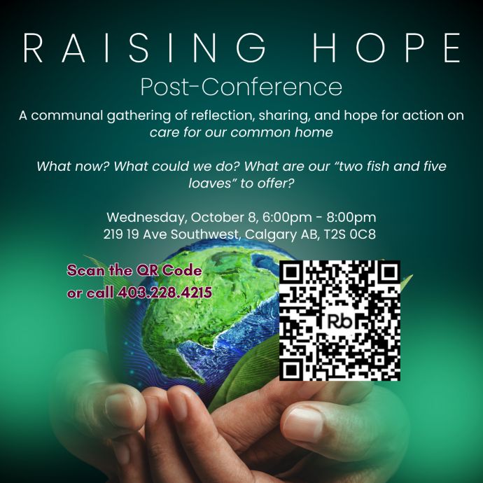 The Laudato Si Committee at the FCJ Christian Life Centre is inviting you for Raising Hope – Post-Conference Conversation. Join us for a communal gathering of reflection, sharing, and hope for action as we continue the conversation from the Raising Hope conference.