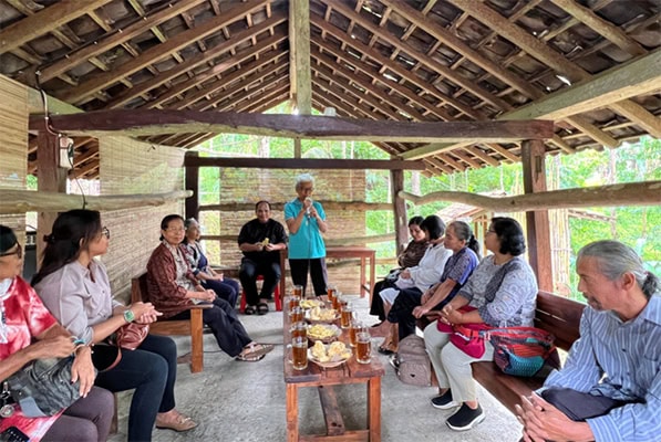 On Wednesday, April 3, Inez and I travelled to a village in Ganjuran, about an hour away by motorbike. There, we met Mr Karyawandi, who has been deeply committed to organic rice farming since 2008. In 2006, Yogyakarta was severely impacted by an earthquake that damaged many areas. The FCJ sisters assisted a group of farmers by providing a water pump to irrigate their rice fields, drawing water from the river since the earthquake had damaged the irrigation canals. At that time, Mr Karyawandi served as the leader of this group. Remarkably, the water pump has been functioning well to this day.