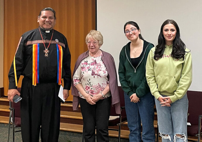 The program ended with a panel of four speakers. First, we heard from Clara and Nevaeh, two high school students from Bishop O’Byrne High School. They explained to us the human-induced damage being done to the planet’s oceans. Then, we heard from our own Sr. Ita, who spoke to the spiritual dimension of eco-consciousness. Sr. Ita emphasized how each person, in small ways, can foster care for our common home. Finally, Reverend Tony Snow, an indigenous pastor of the United Church, spoke to the group.