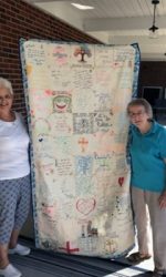 However, God does work in strange ways! Due to the Covid pandemic, Sister’s departure was delayed. Fran finished the beautiful quilt and was able to give it to Sister Imelda personally on Sept. 1st. Only a few could gather on that Tuesday afternoon, but it was a thrill for all of us who were present to enjoy Sister’s excitement when she opened her package.