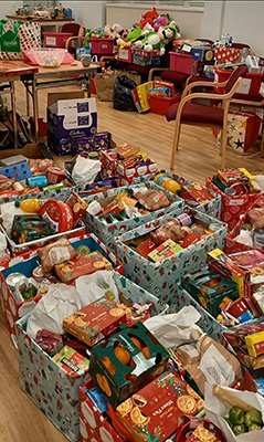 We NEED donations of food and luxury items, as well as volunteers to pack, drive and distribute the hampers.