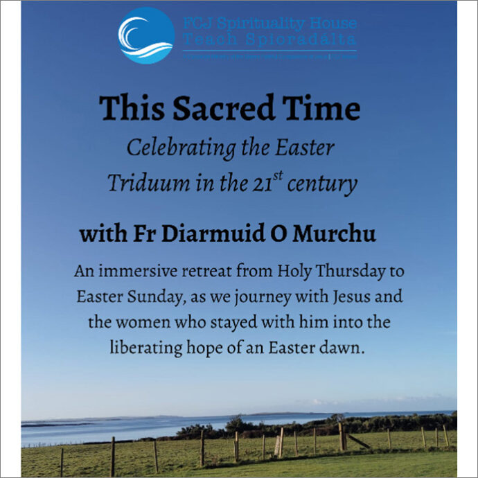 FCJ Spirituality House will be hosting Fr Diarmuid O Murchu: Celebrating the Easter Triduum in the 21st century. An immersive retreat from Holy Thursday to Easter Sunday, as we journey with Jesus and the women who stayed with him into the liberating hope of an Easter dawn.
